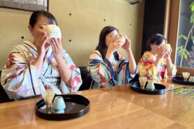 抹茶を点てる体験を通じて、日本文化に触れていただくことができる体験となっています。また、点てたあとは抹茶の表面にお好きな絵を描いていただき、オリジナルのお抹茶を作っていただけます。
